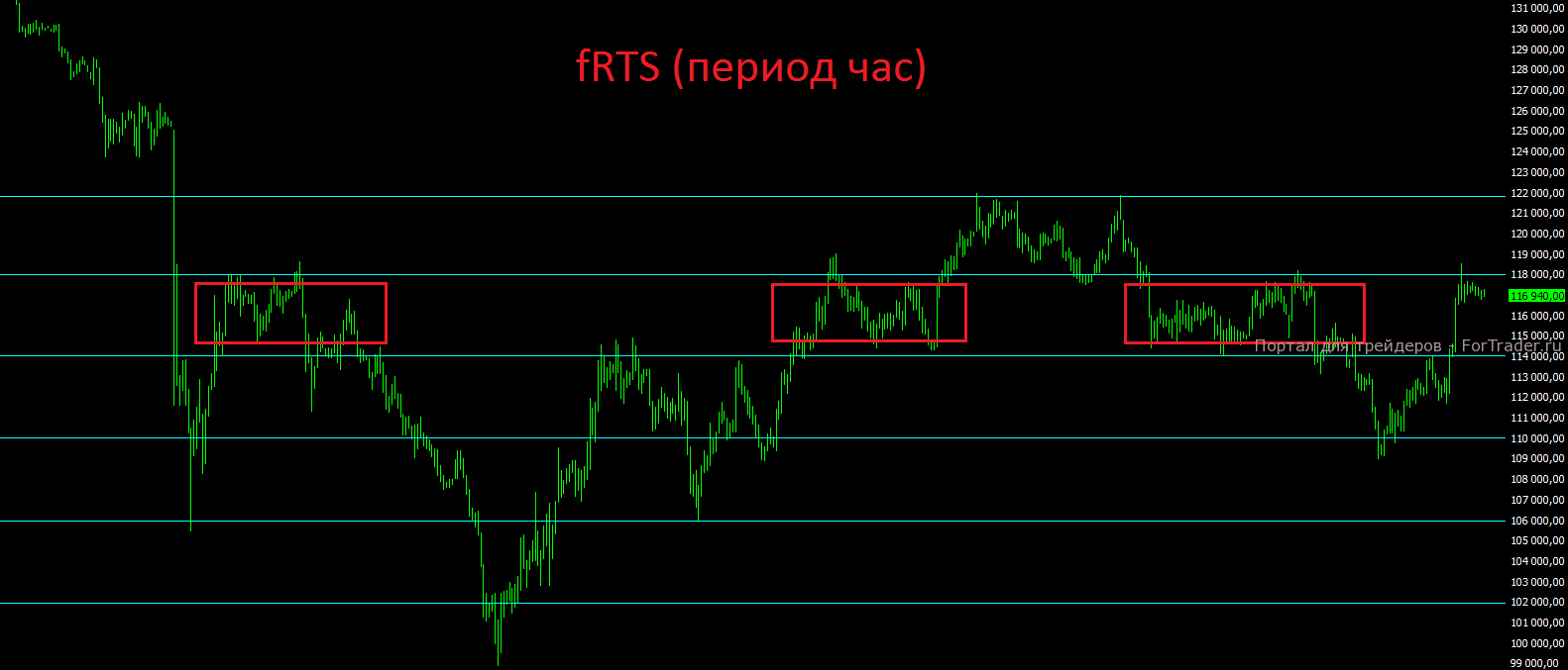 Фьючерс на индекс РТС в пятницу пробил вверх уровень сопротивления на отметке 114000 пунктов и достиг отметки 118000, где также проходит не менее сильное сопротивление. На сегодня шансов практически нет пробить эту отметку, но в ближайшие дни такая возможность и силы могут запросто появиться. В случае пробоя отметки 118000 откроется дорога вверх, вплоть до отметки 112000. В случае закрытия дня ниже отметки 114000, стоит забыть про оптимистичный сценарий и готовится к дальнейшему снижению.