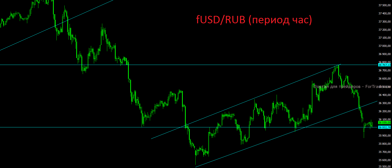 Фьючерс на валютную пару доллар-рубль вновь в пятницу опустился к важной поддержке на отметке 36000, которая будет актуальна в ближайшие дни.