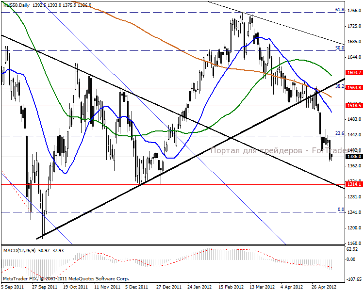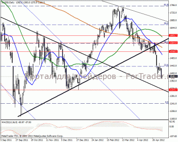 На дневном графике идем к поддержке 1314 пунктов. MACD сигнализирует о продажах.