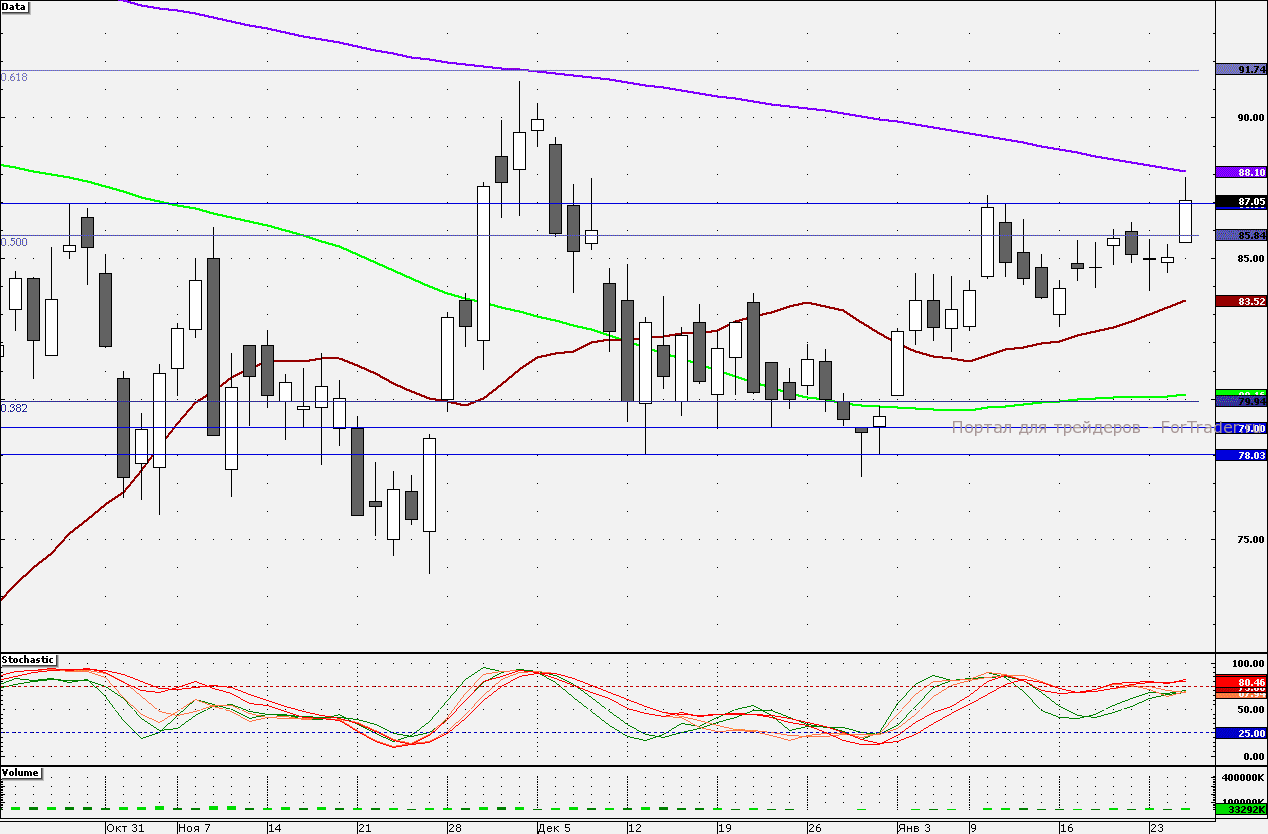 Ближайшие уровни поддержки: 85,00/84,00/83,52/82,50/80,00
