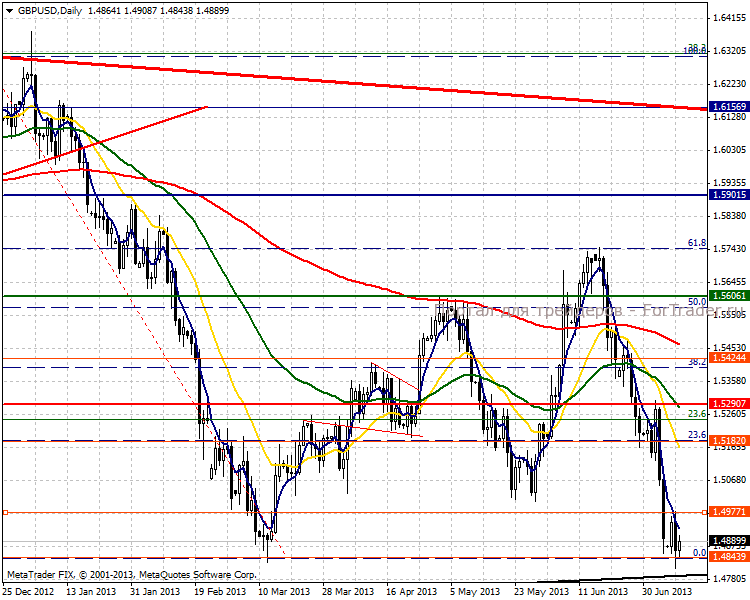 Как видим на сегодня экономическая ситуация не сильно радуем британскую экономику. Массовое снижение промышленности в стране приводит к ухудшению торговой политики и положения в целом. Финансовый кризис и рецессия в еврозоне нависают серьезной угрозой и неспособностью преодолевать внешнеполитические проблемы. Настоящее положение в данной валютной паре достаточно нестабильное. Котировка не раскрывает истинной сущности колебаний валют и рисует среднестатистическую картину, в которой на часовом графике преобладает локальная понижательная тенденция ввиду давления американского доллара и объемов банковских операций. В краткосрочной перспективе пара будет пытаться отыгрывать пробоем сопротивления 1.49771 пунктов в средину диапазона 1.49771-1.51820 пунктов. Однако входить и выходить с лонга необходимо очень тонко, поэтому рекомендуем быть терпеливее.