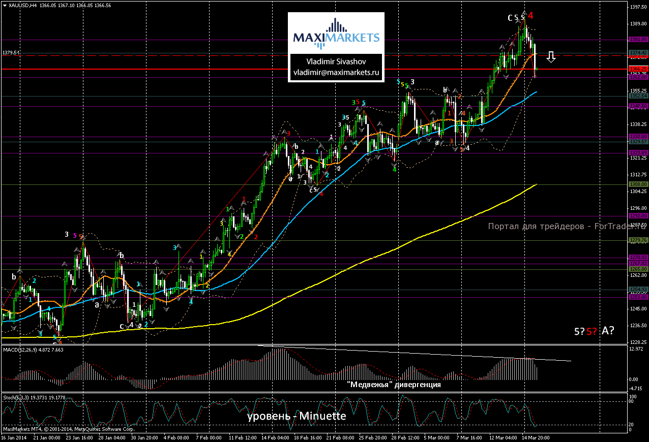 Котировки драгоценных металлов рухнули на вчерашних торгах в связи с не оправдавшимися опасениями рынка по поводу усиления конфронтации западных стран и России по итогам Крымского референдума. Участники торгов ждали санкций и ответных действий России, однако ничего не последовало, и рынок опять бросился покупать рисковые валюты, забыв о золоте. На этом фоне котировки металлов, зафиксировавшие на открытии торгов максимальный всплеск курсов, начали стремительное снижение и от достигнутых максимумов 1392.11$ за тройскую унцию золота и 21.63$ за тройскую унцию серебра откатились в зону 3-х дневных минимумов, протестировав при этом минимальные дневные уровни 1361.94$ за тройскую унцию золота (- 30.17$) и 21.06$ за тройскую унцию серебра (- 57 центов).