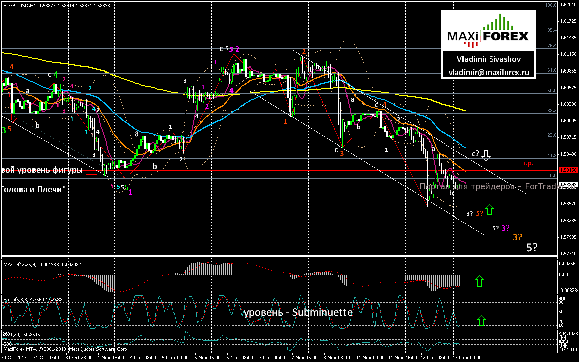 В нашем сегодняшнем прогнозе предполагаем возобновление коррекционного подъёма пары в район верхней границы нисходящего канала, к уровню дневного разворота — 1.5915