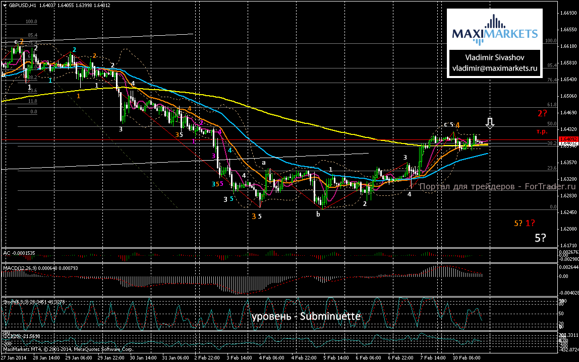 В нашем сегодняшнем прогнозе, предполагаем завершение боковой динамики валюты и выход пары из вчерашнего диапазона к целевым уровням: 1.6390; 1.6340 и 1.63. Возобновление подъёма пары станет возможным, только в случае пробоя 2-х недельной линии нисходящего тренда и закрепления пары выше уровня 1.6434. При этом, целями краткосрочного подъёма пары станут ценовые уровни 1.6438 и 1.6466, после достижения которых ожидаем разворот пары на снижение.