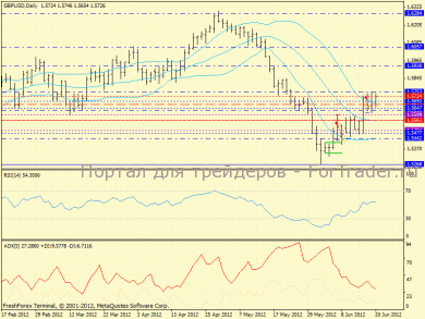 Дневной график: ADX все еще смотрит вниз, и это подозрительно, т.к. быки вплотную вывели пару на новый рывок вверх, ещще на 300 пп.