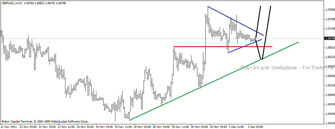 Фунт также двигался в коррекционном стиле, вначале вроде бы показав, что восходящее движение возобновилось, тот тут же резко снизившись. В данный момент торговля идет внутри треугольника над уровнем поддержки. В таком случае возможен вариант при котором пара начнет снижаться и достигнув линии тренда резко начнет расти, либо же пробив верхнюю границу треугольника пойдет вверх. Стоит понаблюдать за тем какой же все таки вариант изберет цена.