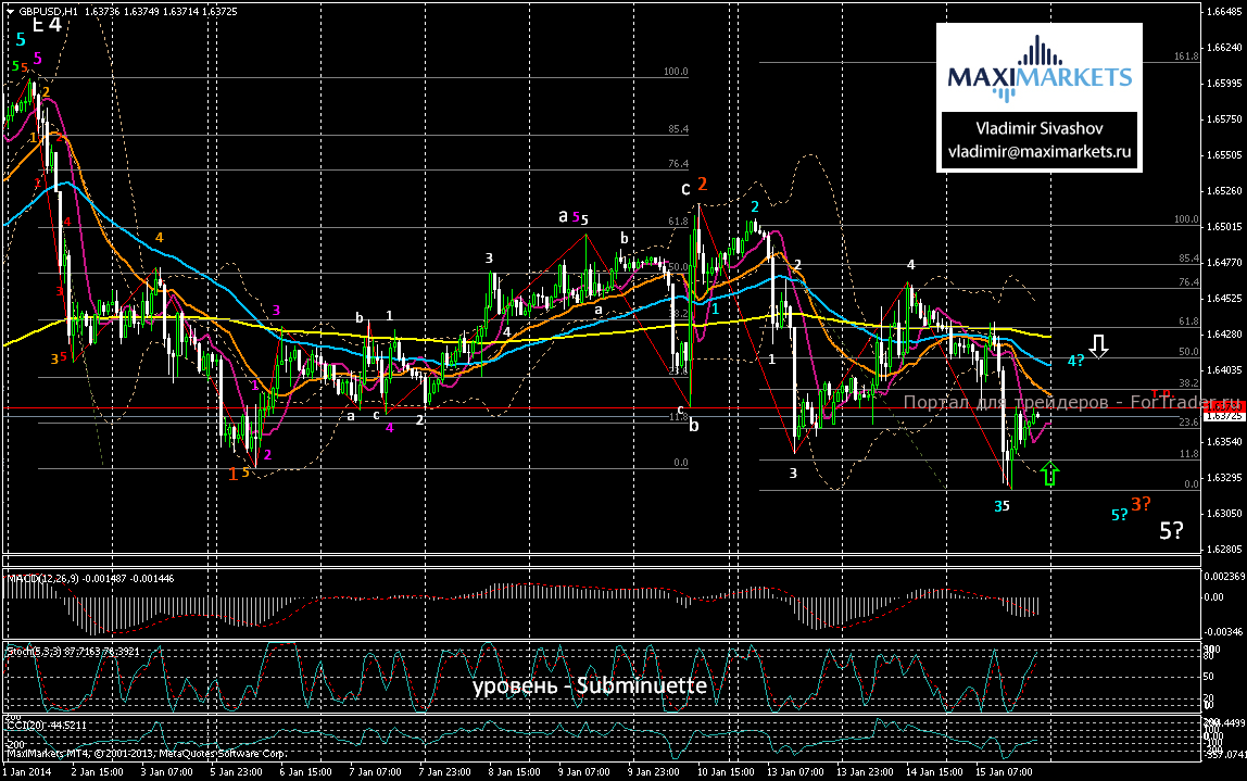 В нашем прогнозе на четверг предполагаем возобновление коррекционного подъёма пары в ценовую зону 1.6395 ÷ 1.6425, а затем – новое снижение курса британской валюты.
