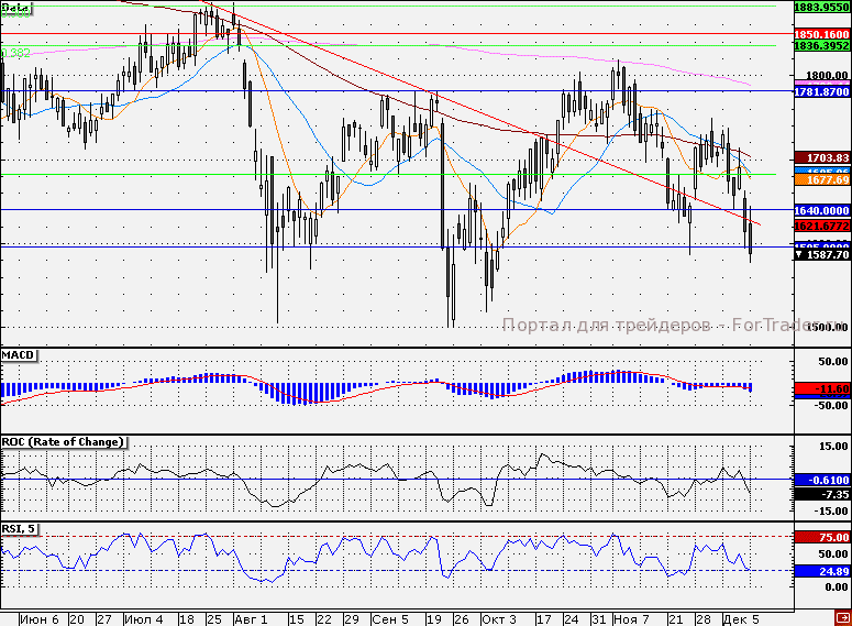 Ближайшие уровни сопротивления: 1600,00/1630,00/1640,00/1650,00