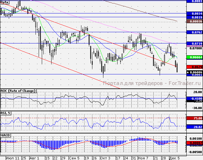 Ближайшей поддержкой по акциям эмитента является отметка 6 коп., при закреплении ниже которой следующей целью станет ноябрьский минимум – 5,96 коп., далее – октябрьский минимум (5,86 коп.). Локально бумага перепродана, поэтому в случае улучшения внешнего фона акции могут продемонстрировать отскок наверх. Однако торопиться с открытием лонгов все же не стоит. Сохраняющаяся в стране политическая напряженность пока что выступает на стороне продавцов.