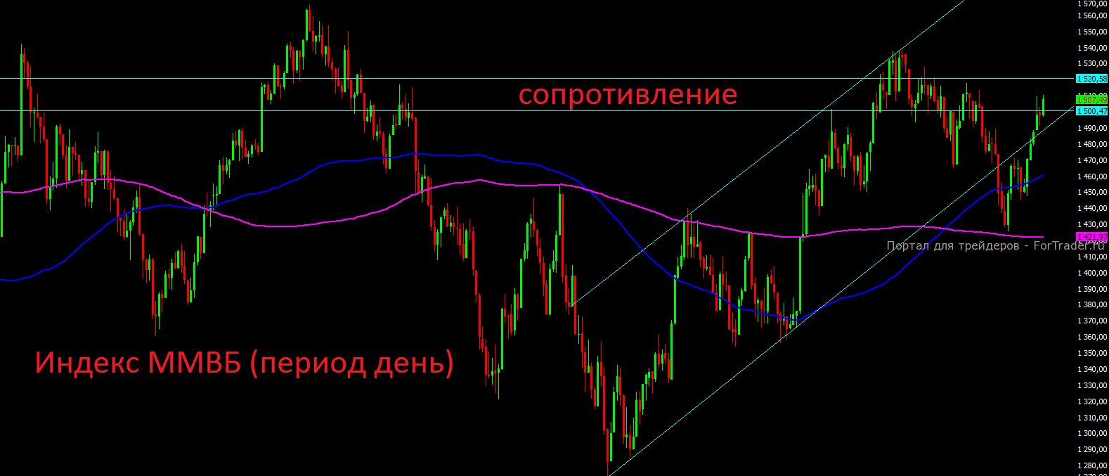 С технической точки зрения российский индекс ММВБ вновь подошёл к сильной зоне сопротивления 1500-1520 пунктов, в которой наблюдались распродажи на протяжении всего сентября и октября. Скорее всего и в декабре индексу не удастся прыгнуть выше неё.