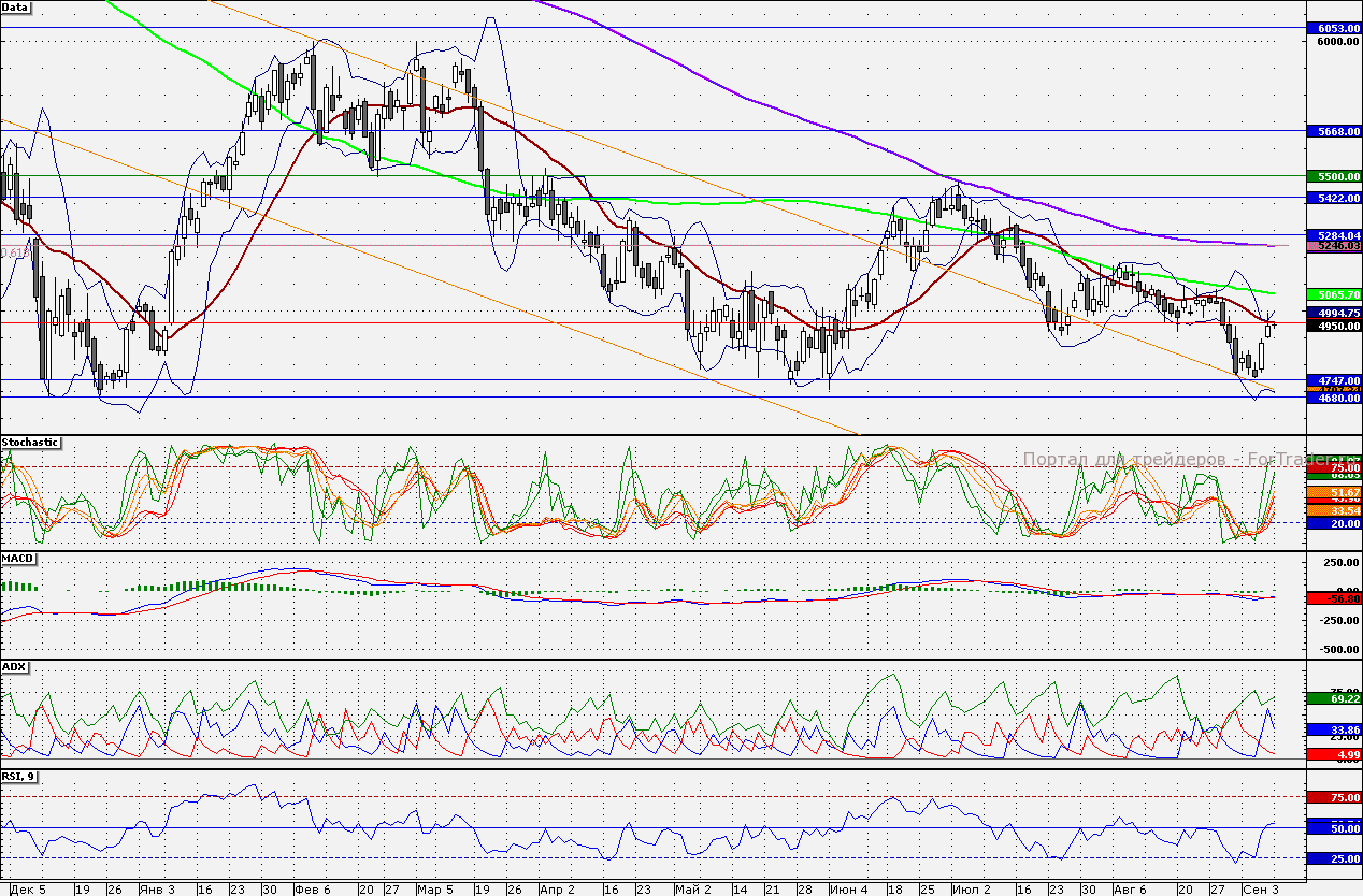 Ближайшие уровни поддержки: 4850,00/4750,00/4680,00