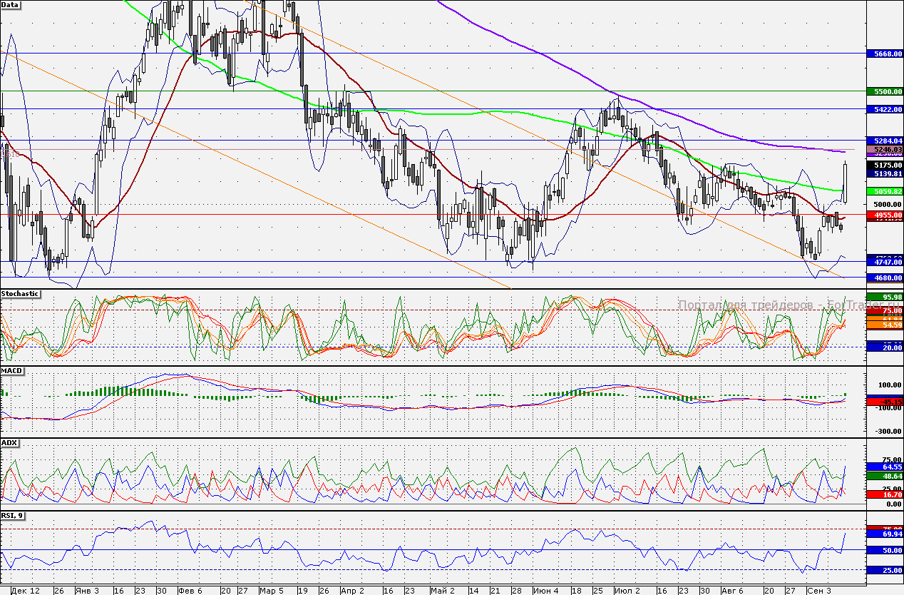Ближайшие уровни поддержки: 5100,00/5059,82/5000,00/4941,90/4889,0
