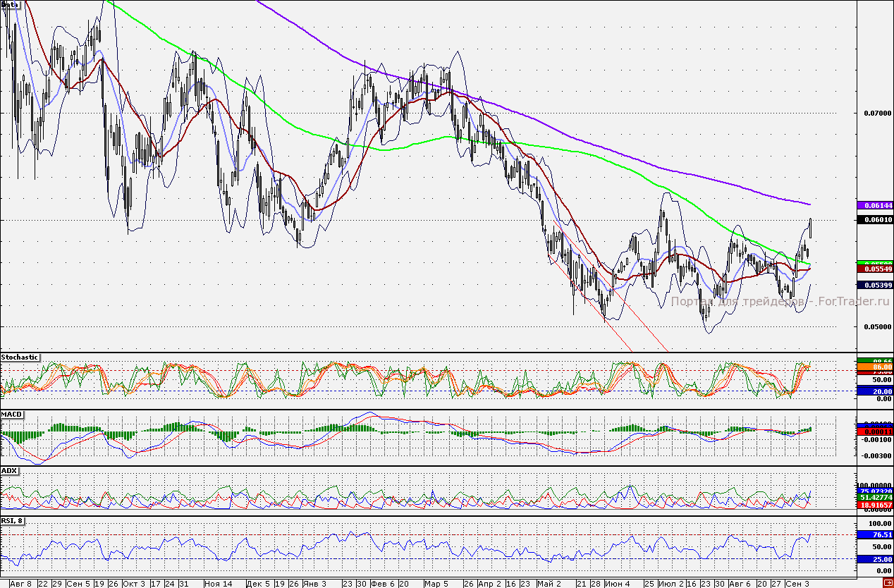 Акции ВТБ закрылись в районе 6,0 коп., но внешний фон располагает к формированию коррекционных настроений. Поддержкой станет 5,830 коп. От данной отметки стоит наращивать спекулятивные «лонги». Следующей целью станет закрытие пятничного гэпа – 5,659 коп.