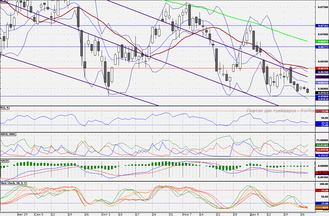 Акции банка закрылись ниже важной отметки 6,000 коп. Поддержкой является минимум прошедшей сессии 5,900 коп., к его тестированию располагает негативный внешний фон. Пробитие вниз данной отметки может привести к тестированию годового минимума 5,860 коп.