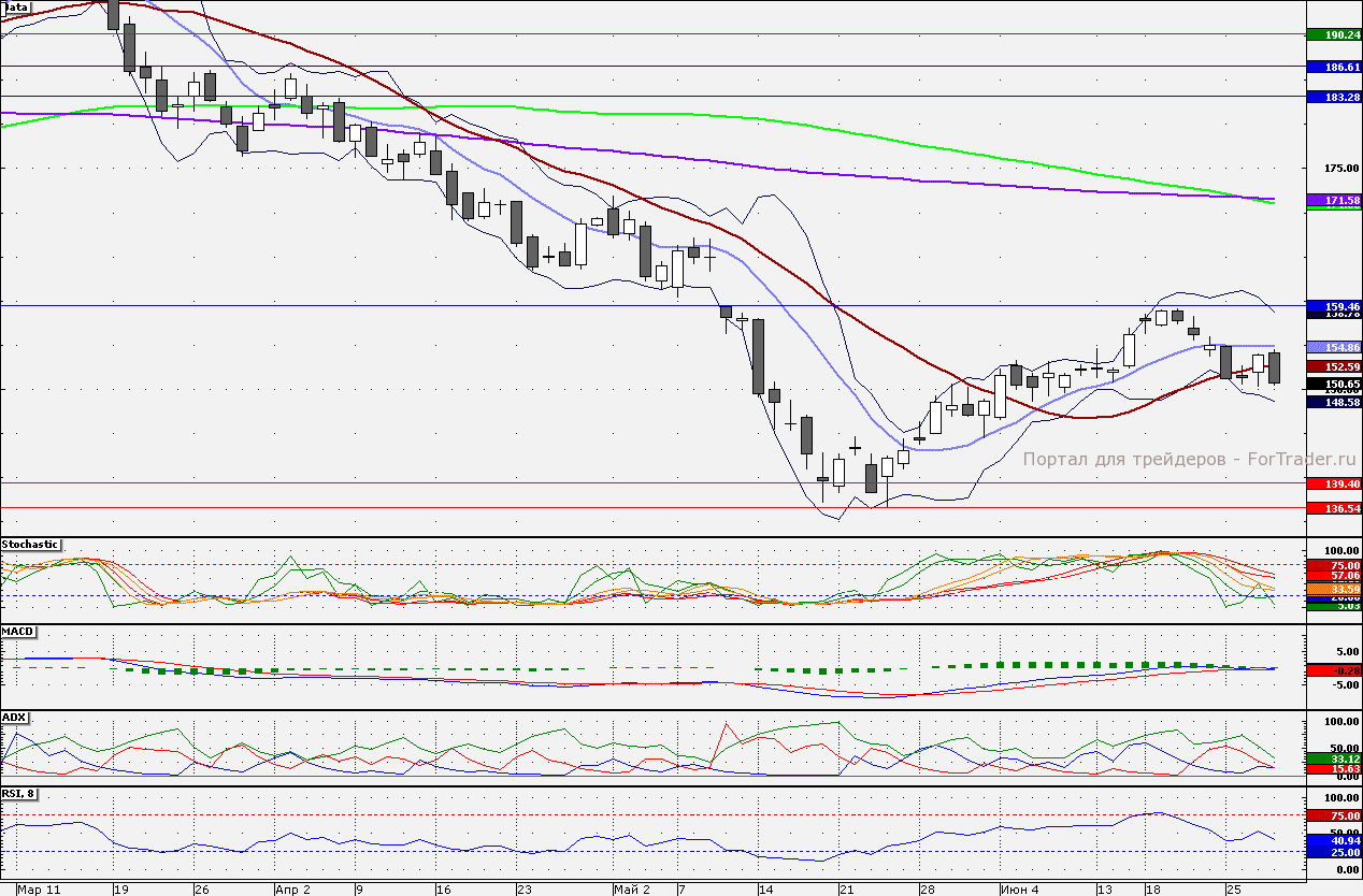Ближайшие уровни сопротивления: 154,86/160,00/165,00