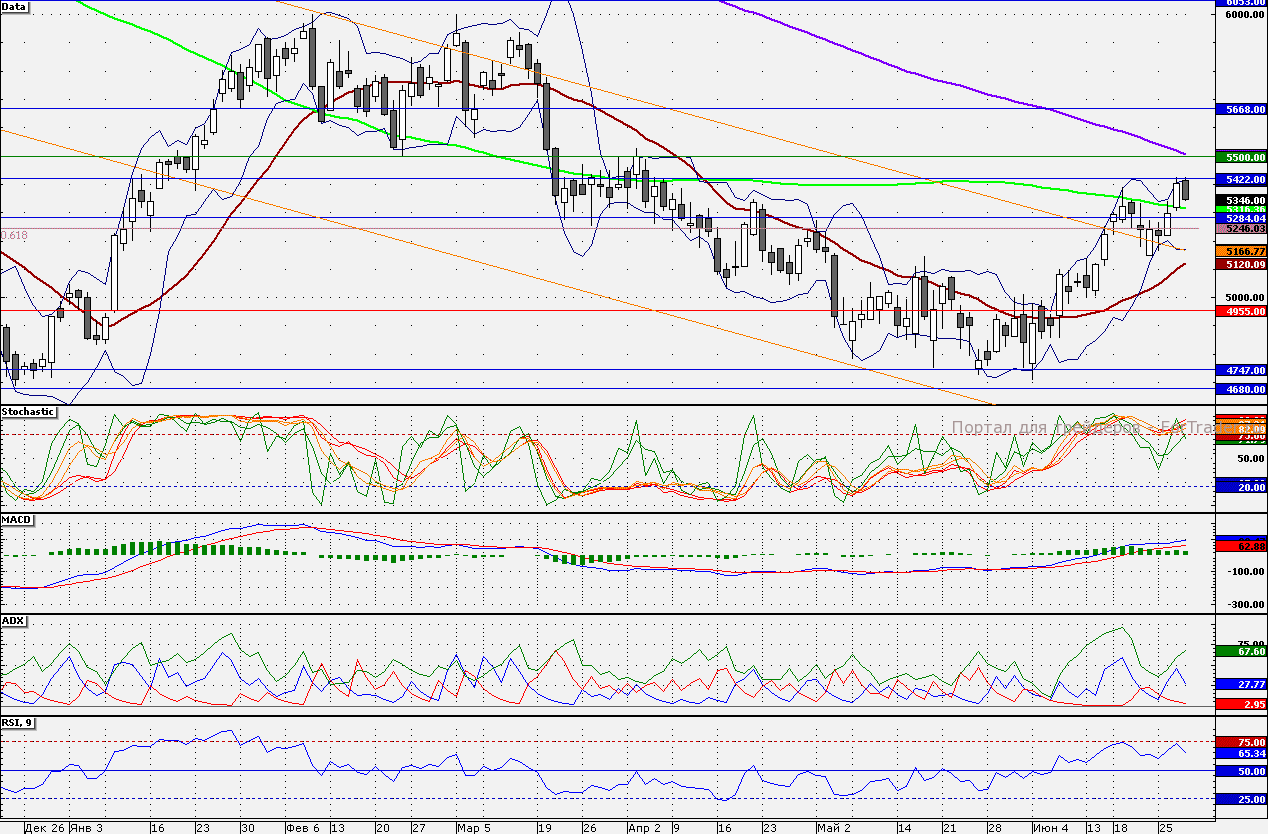 Ближайшие уровни поддержки: 5316,36/5100,00/5000,00