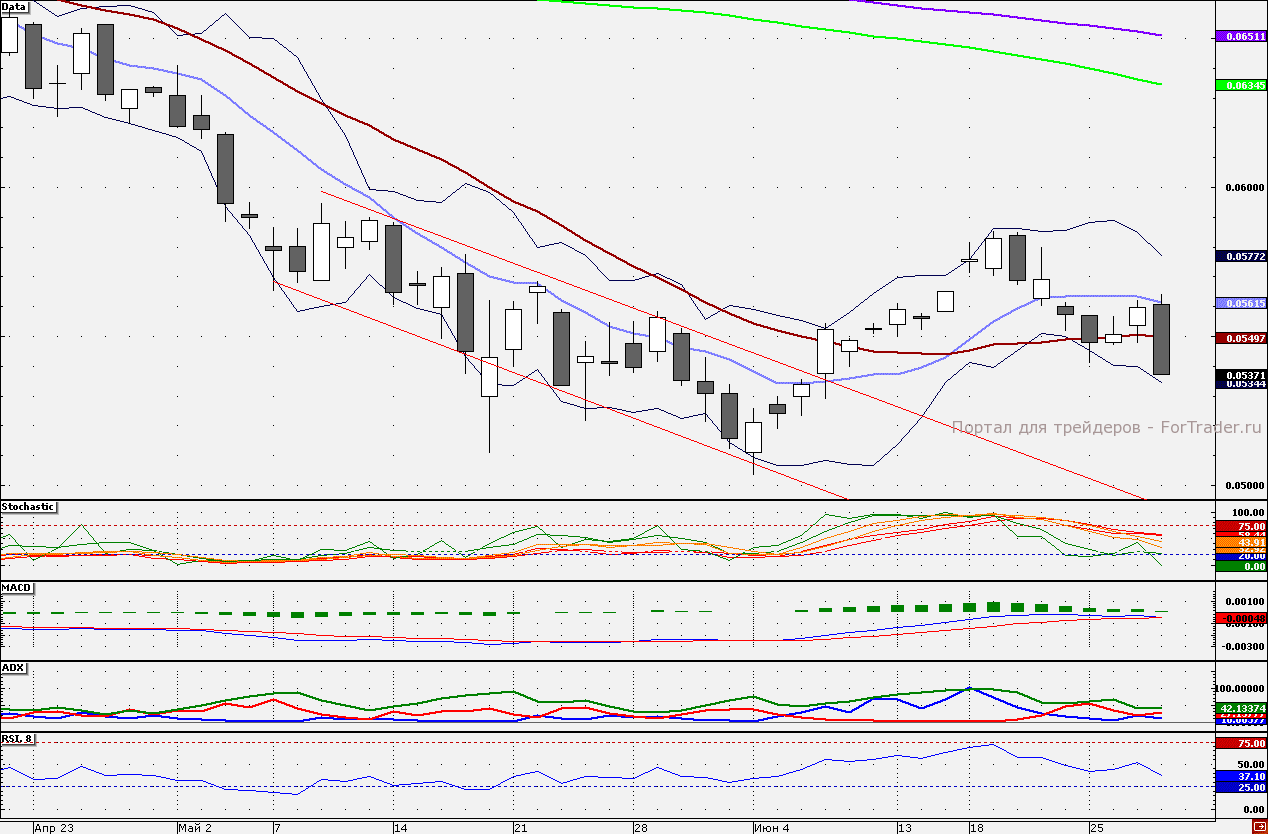 Акции ВТБ могут пробить вверх 21-дневную скользящую среднюю – 5,497 коп. Далее сопротивлением станет 10-дневная скользящая — 5,615 коп. Поддержкой является 5,300 коп.