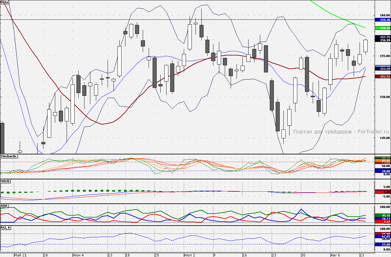 Ближайшие уровни сопротивления: 157,00/158,44