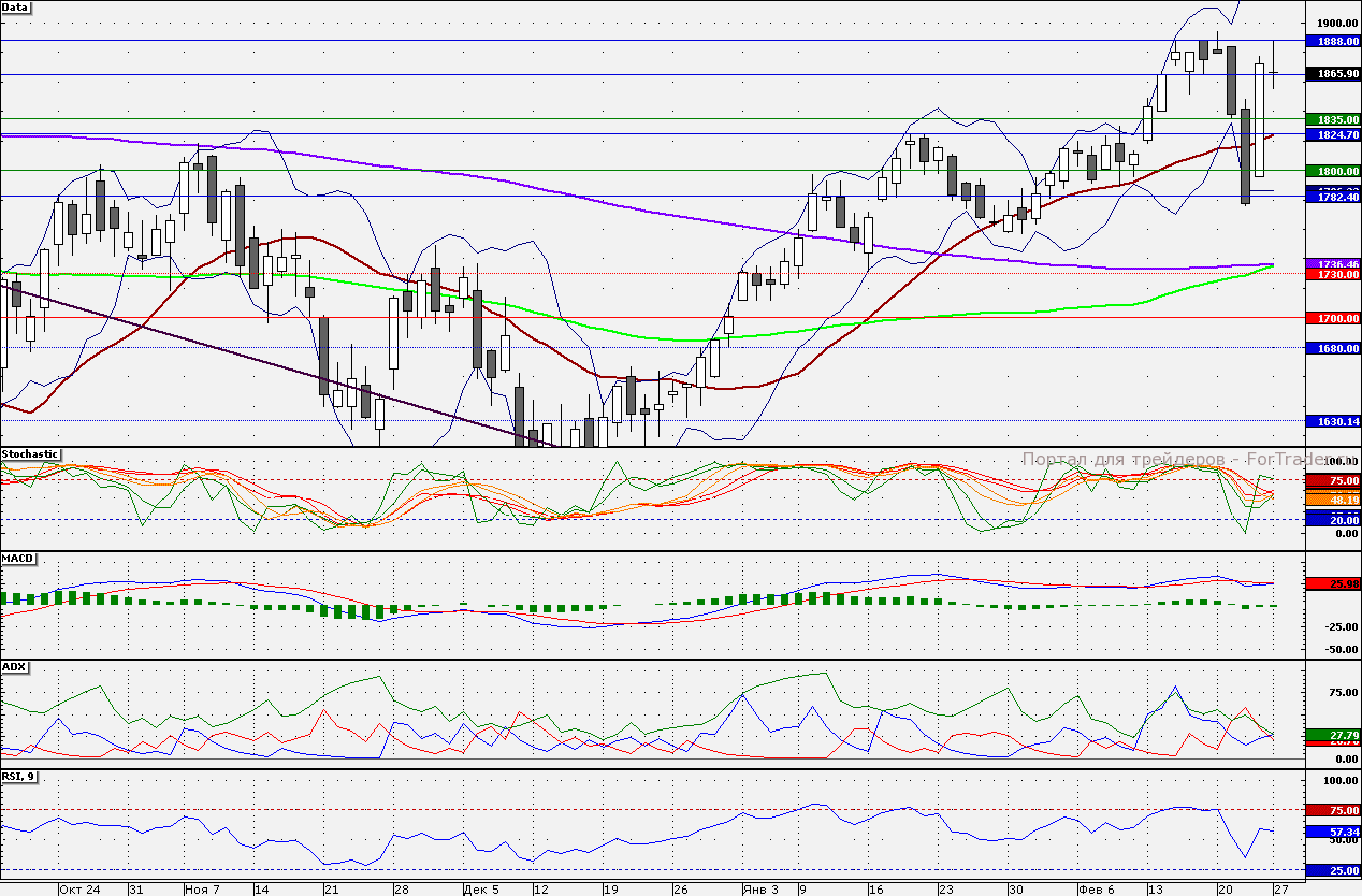 Ближайшие уровни сопротивления: 1888,00/1900,00