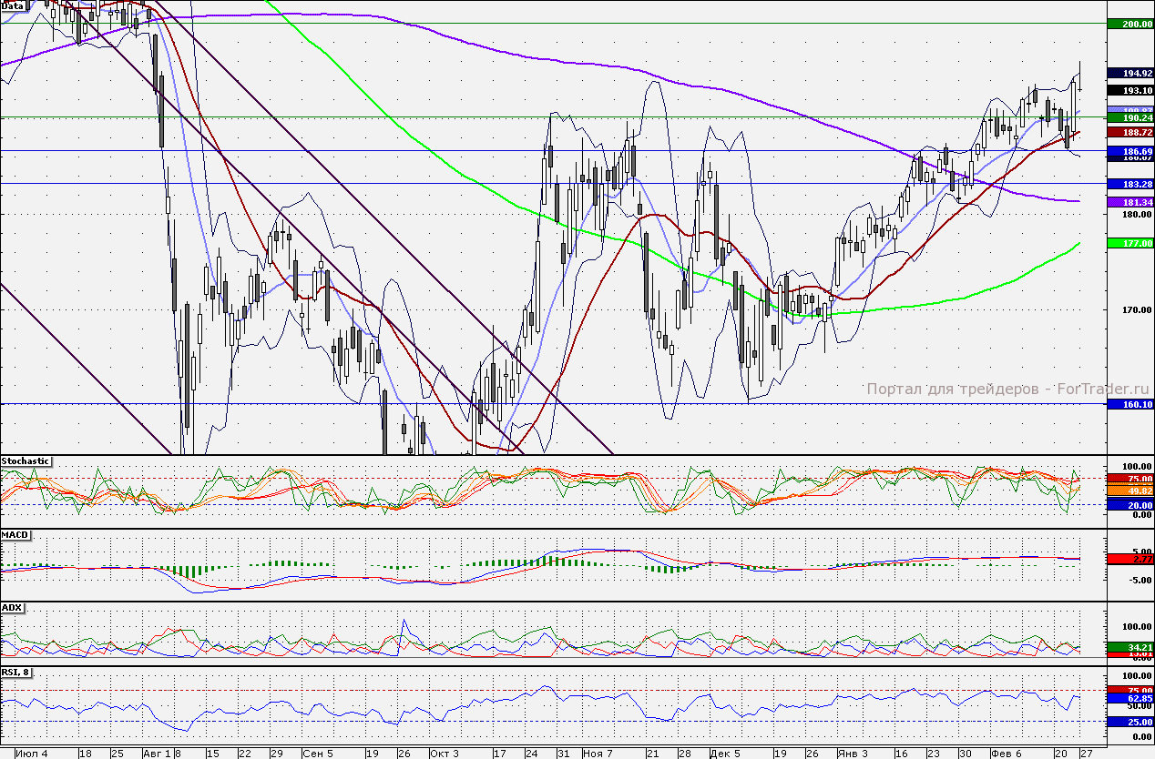 Ближайшие уровни поддержки: 192,50/190,87/190,00/188,72/186,70