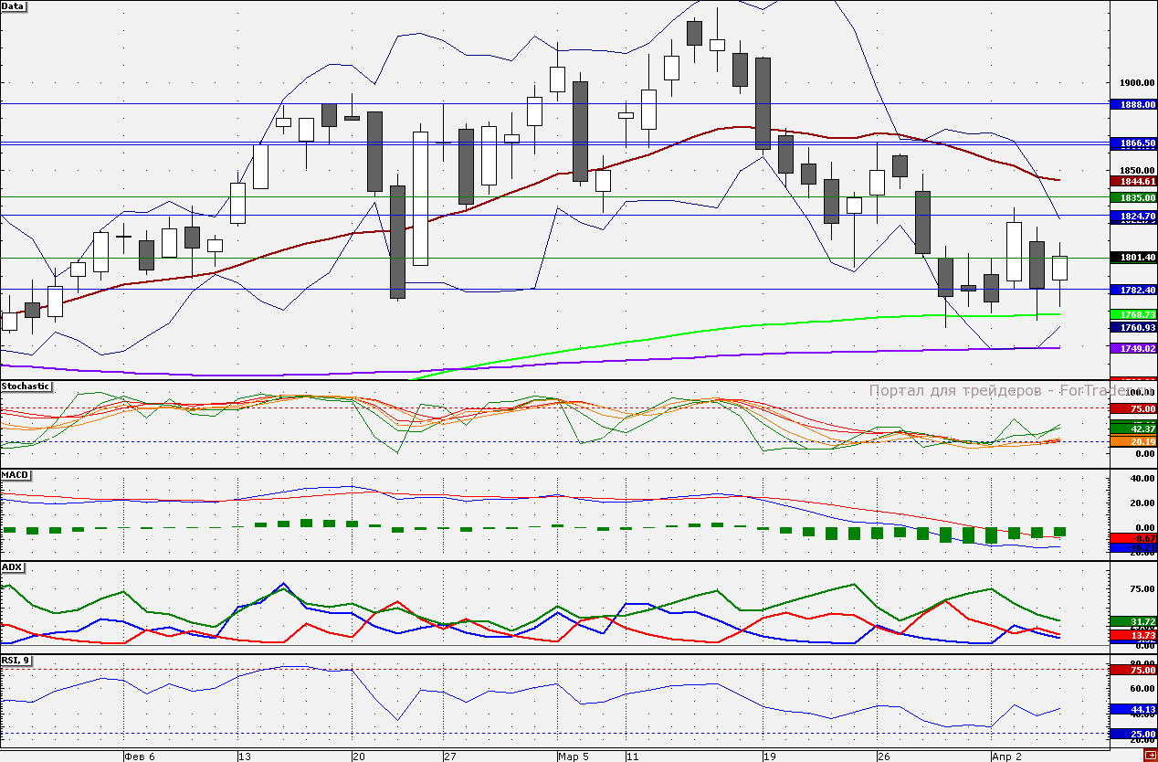 Ближайшие уровни поддержки: 1800,00/1768,73/1750,00
