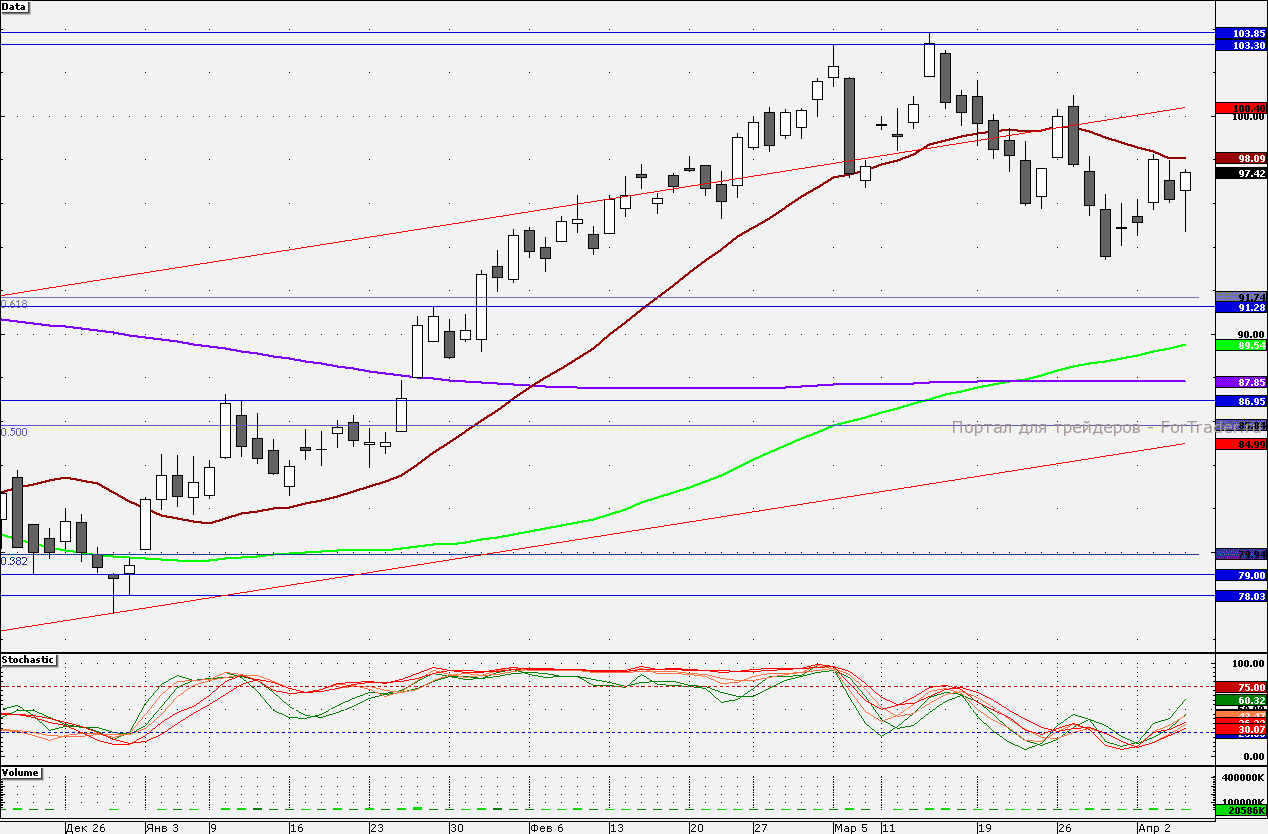 Ближайшие уровни поддержки: 96,00/95,00/92,00/90,00