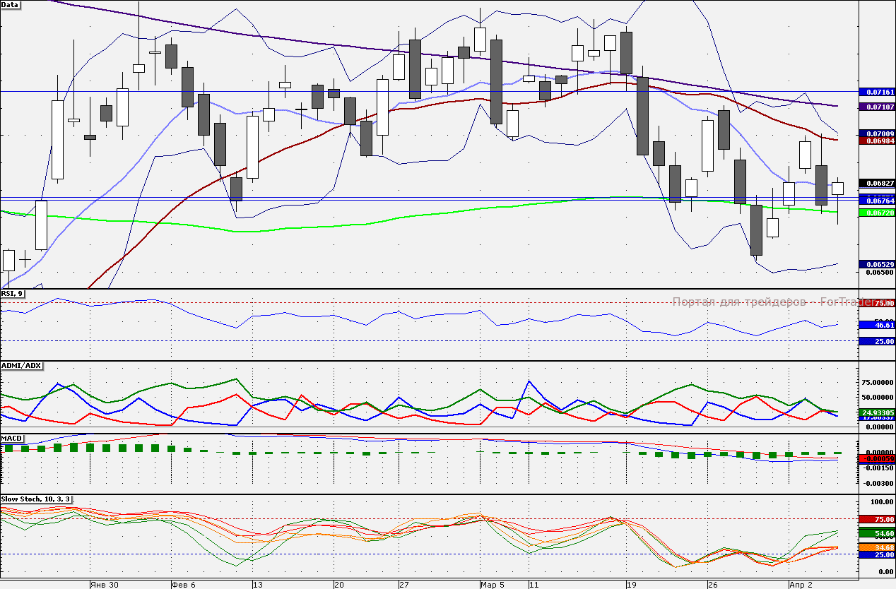 Акции ВТБ закрылись на 10-дневной скользящей средней. Сопротивлением является 21-дневная скользящая средняя 6,984 коп., от которой «лонги» стоит сокращать. Поддержкой является 100-дневная скользящая — 6,720 коп.