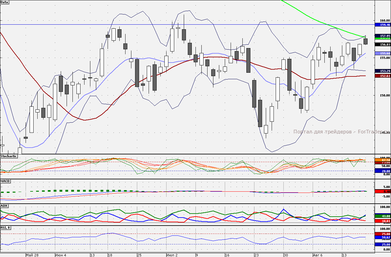 Ближайшие уровни сопротивления: 157,50/158,00/160,00