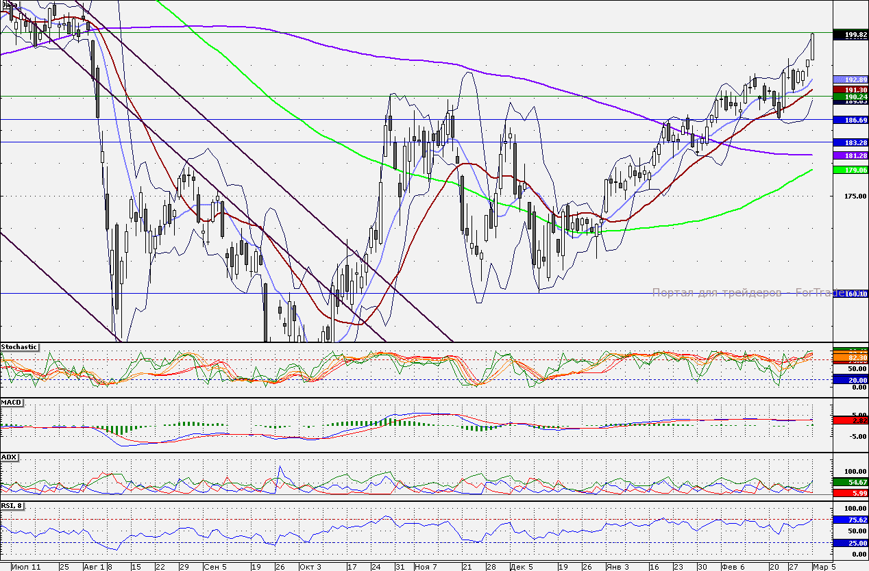 Ближайшие уровни поддержки: 196,00/195,00/192,89/191,30/190,00