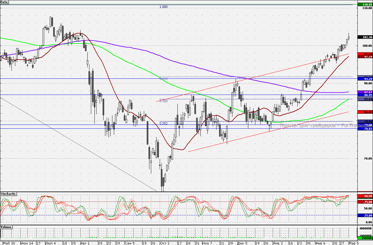 Ближайшие уровни поддержки: 100,00/98,00/97,19/95,00/92,50/91,15
