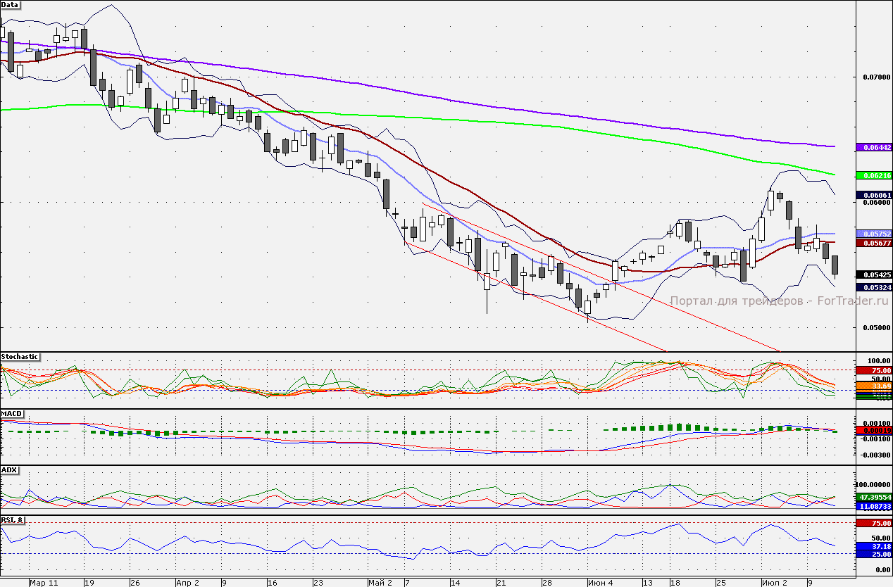 Акции «Газпрома» устремились к отметке 150,00 руб., но внешний фон способствует отскоку вверх. Сопротивлением является район 155,00 руб., где проходят 21- и 10-дневные скользящие средние.