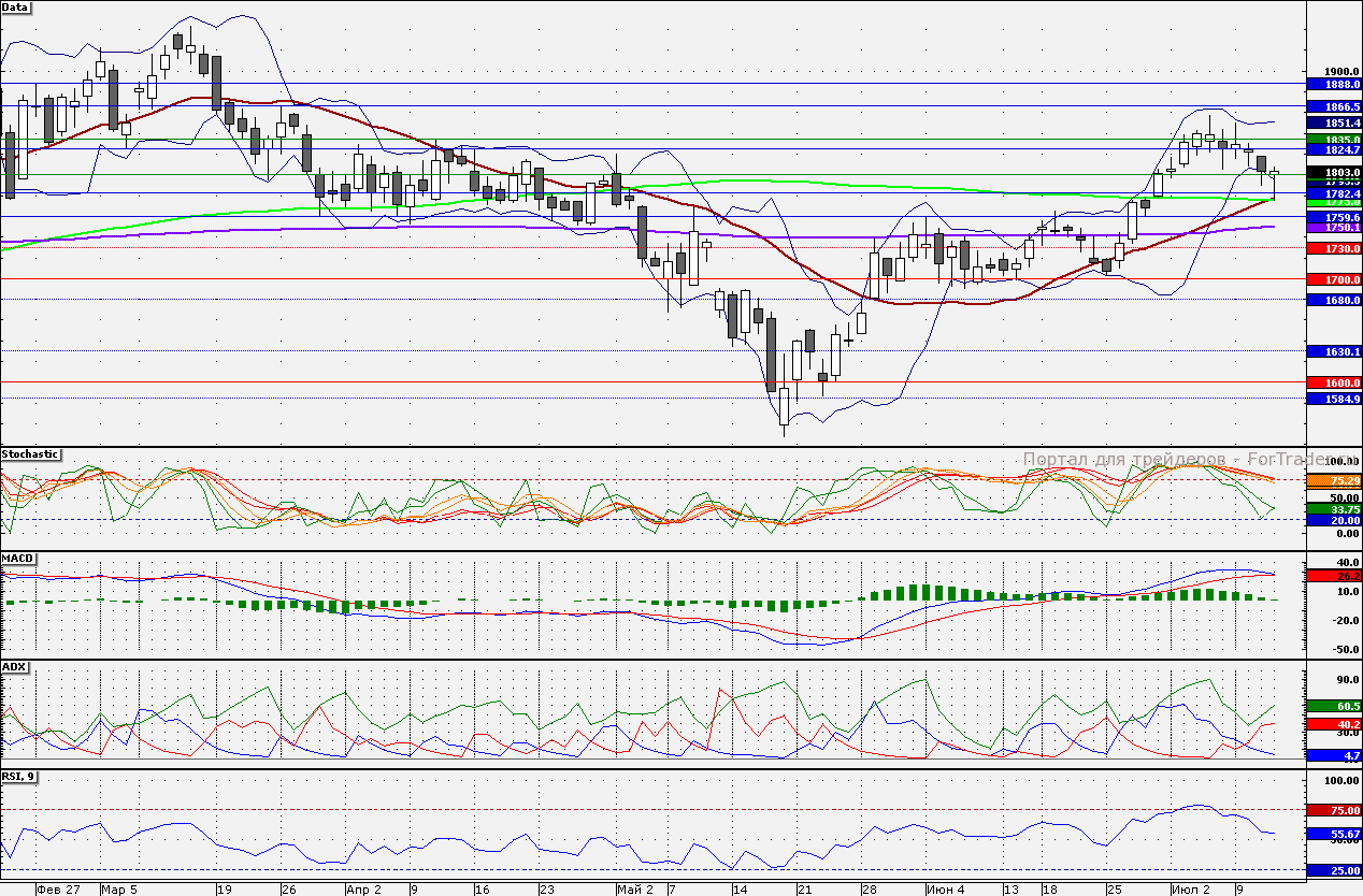 Ближайшие уровни поддержки: 1800,00/1775,00/1750,00/1740,0