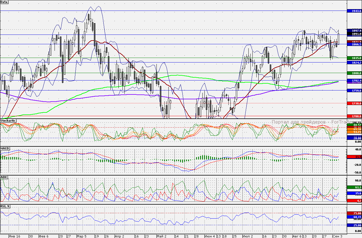 Ближайшие уровни поддержки: 1890,00/1870,00/1850,00/1830,00/1825,0