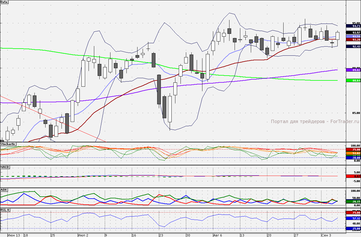 Обыкновенные акции Сбербанка закрылись выше 10-дневной скользящей средней. Сопротивлением станет 95 руб., от данного уровня «лонги» стоит сокращать. Поддержкой остается 10-дневная скользящая средняя – 93,67 руб.