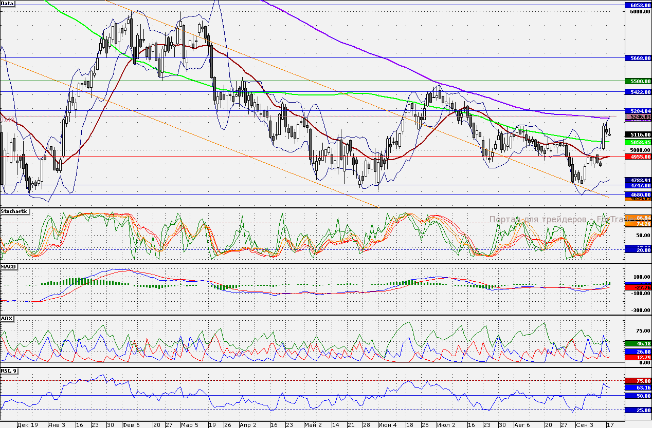 Ближайшие уровни поддержки: 5100,00/5058,35/5000,00/4955,24/4889,0