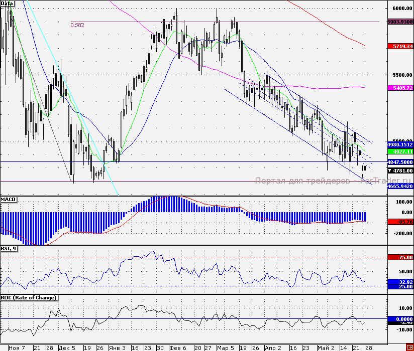 Ближайшие уровни поддержки: 4700,00/4680,00/4500,00