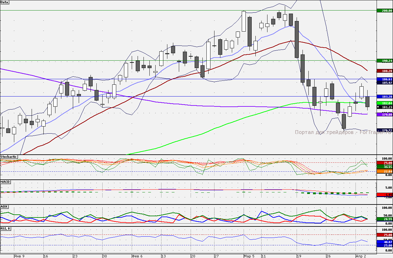 Ближайшие уровни поддержки: 180,00/177,00/175,00