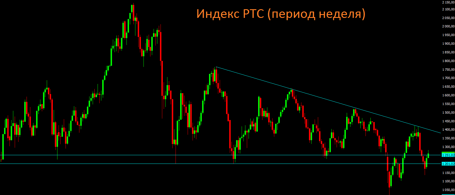 Глядя на недельный график индекса РТС, пока рисуется поход к отметке 1350 пунктов в ближайшие три недели, как раз к квартальной экспирации. В случае закрытия недели ниже отметки 1200 пунктов, стоит готовиться к более серьёзной коррекции.