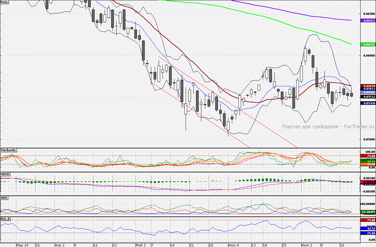 Акции ВТБ торгуются в районе 5,5 коп., данная отметка является важной поддержкой. Сопротивлением является 21-дневная скользящая средняя – 5,639 коп., от данной отметки «лонги» стоит сокращать.