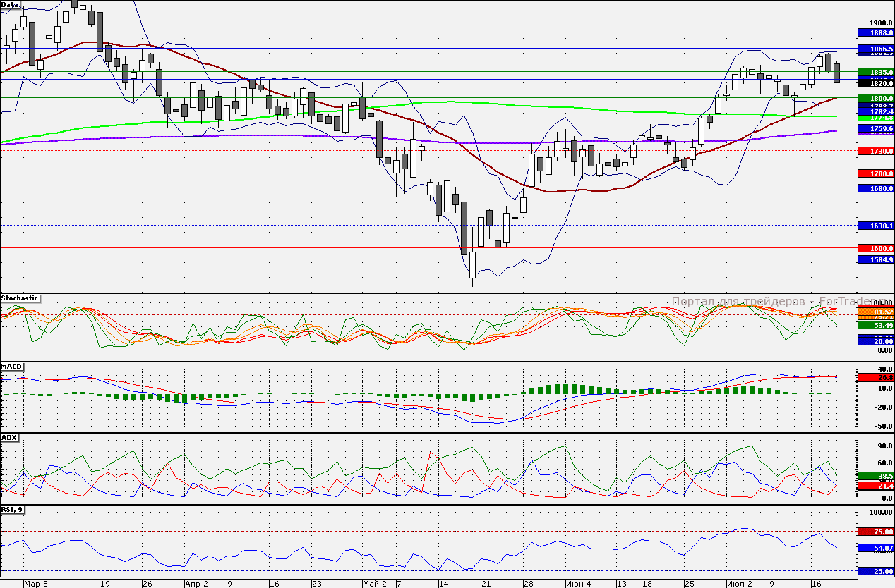 Ближайшие уровни поддержки: 1800,00/1775,00