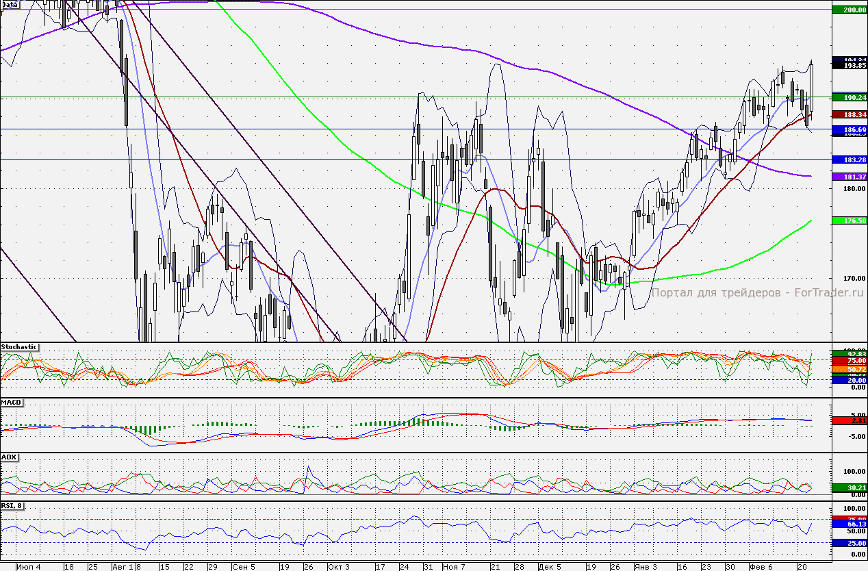 Ближайшие уровни поддержки: 192,50/190,00/188,34/186,70/186,20
