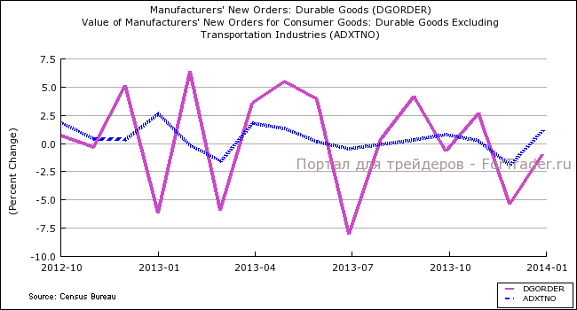 Вышедшие данные по США оказались разнополярными и особой реакции не вызвали, заказы на товары длительного пользования вышли лучше ожиданий, в то время как заявки на пособие по безработице выросли. Заказы на товары длительного пользования снизились в январе на 1%, что оказалось меньше ожидавшегося снижения на 1,7%. Снижение заказов было в основном вызвано сокращением заказов на самолеты. Без учета волатильного транспортного сектора заказы выросли на 1,1%, против ожиданий снижения, и показали самый сильный рост с мая прошлого года.