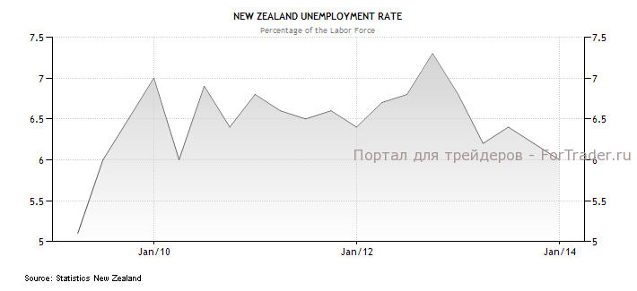 Новозеландский доллар также значительно укрепится во вторник перед квартальным отчетом по рынку труда Новой Зеландии. Число занятых в Новой Зеландии в четвертом квартале 2013 года выросло на 1,1% к предыдущему кварталу, превысив ожидания роста на 0,6%. Уровень безработицы в четвертом квартале снизился до 6% по сравнению с 6,2% в третьем квартале, как и ожидалось. Уровень безработицы оказался минимальным почти за 5 лет с первого квартала 2009 года.