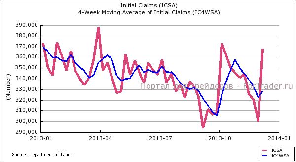 В то же время, данные с рынка занятости показали неожиданный рост первичных заявок на пособие по безработице, которые на прошлой неделе резко выросли на 68 тыс. до 368 тыс, максимального значения за два месяца. Среднее число заявок за последние 4 недели увеличилось до 328,75 тыс. с 322,75 тыс. неделей ранее. Однако Министерство труда США предупредило, что данные последней недели могли быть искажены из-за сезонных факторов и праздников, приходящихся на последние два месяца года.
