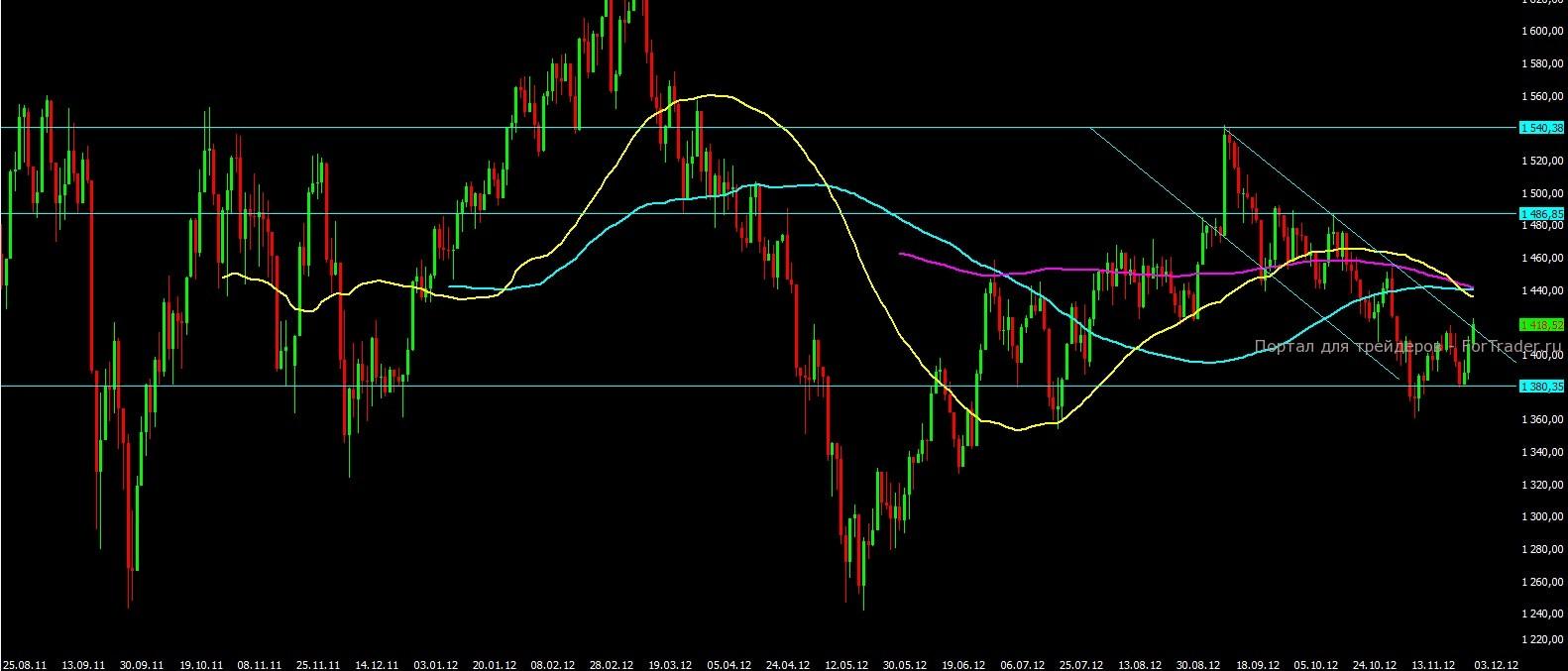 Индекс ММВБ в понедельник достиг верхней границы нисходящего канала на отметке 1420, откуда вполне стоило ожидать небольшой технический откат. Впереди ещё более серьёзные сопротивления в диапазоне 1440-1450, пройти которые без существенного драйвера рынок точно не сможет. Психологическим уровнем поддержки на ближайшие два дня будет выступать отметка 1400 пунктов и только при пробое отметки 1380 пунктов, можно будет говорить о новой, более серьёзной волне снижения. Торговый диапазон сегодня будет скорее довольно узким, поэтому открывать какие либо новые позиции не целесообразно.