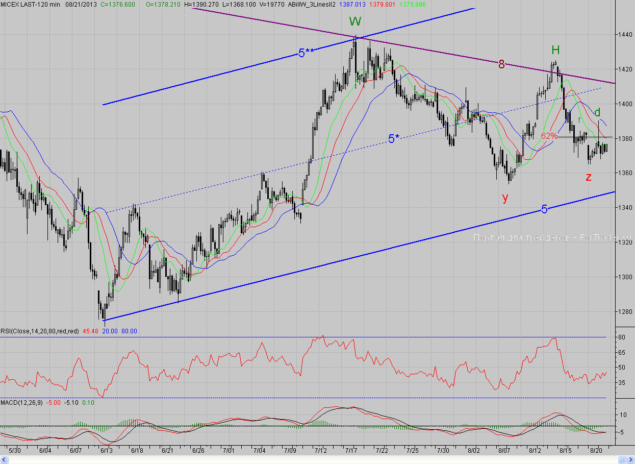На сегодня рекомендуем до 2- часового фрактала на продажу Z (1 365,28 п.) поискать момент для покупки с коротким стопом.
