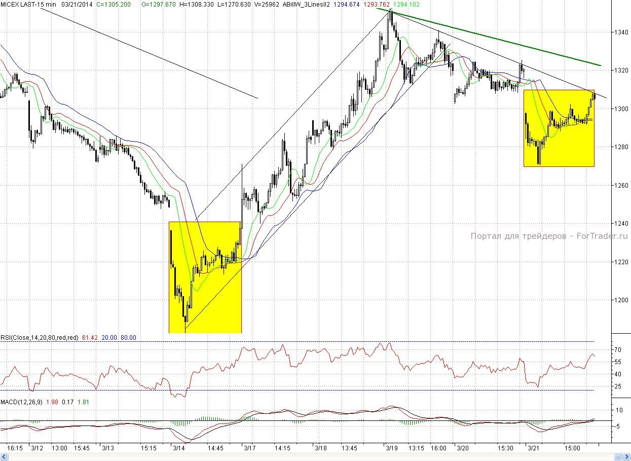 Но и про оборону покупателям необходимо постоянно помнить. Роль ближайшей поддержки сыграет пятничный вечерний минимум (1 292п.), а далее дневной b (1 270.63 п.) и уровень 50% коррекции.