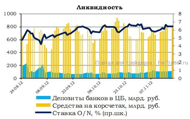 Рубль за прошедший день слегка ослабился. Бивалютная корзина подорожала на 0,29%, сегодня торгуется на уровне 35,1967 (-0,06%), при этом доллар укрепился к рублю на 0,02% до 31,1810 руб.; евро выросла до 40,1456 руб. (+0,48%). Средства на корсчетах банков выросли на 6,8 млрд. руб., депозиты в ЦБ увеличились на 4,6 млрд. руб. Ставка овернайт сократилась на 20,50 б.п. и составляет 6,0000 п.п.