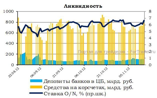 Рубль за прошедший день укрепился. Бивалютная корзина подешевела на 0,42%, сегодня торгуется на уровне 35,3061 (+0,14%), при этом рубль укрепился к доллару на 0,43% до 31,2955 руб.; евро понизилась до 40,1005 руб. (-0,38%). Средства на корсчетах банков выросли на 7,5 млрд. руб., депозиты в ЦБ увеличились на 4,1 млрд. руб. Ставка овернайт опустилась на 30,00 б.п. и составляет 6,1350 п.п.