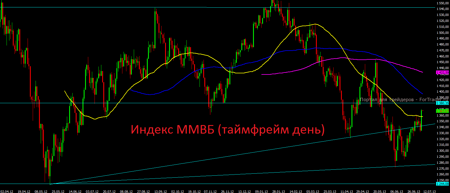 Мощным ростом накануне закрылись практически все мировые площадки, а российский фондовый рынок, можно сказать, был лидером вчера по темпам роста и это на фоне очередного оттока денег из российских фондов. На этой неделе отток составил 16.млн. долларов. Кардинально в мире за последние 1-2 дня ничего не поменялось, поэтому говорить о начале какого то ралли явно не стоит. Скорее стоит присматриваться к фиксации прибыли по длинным позициям в ближайшее время. Возможно мы ещё увидим рост в пределах 2-3% по российским индексам, но это будет зависеть от сегодняшнего закрытия. Ближайшим уровнем сопротивления по индексу ММВБ будет выступать диапазон 1380-1400 пунктов. На данный момент, тем, кто находится сейчас без позиций, мы рекомендуем уже воздерживаться от покупок.